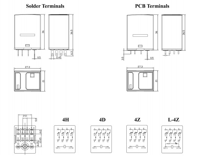 ميزة الاتصال | استمارة | 2Z (DPDT) ؛ 2H (DPST-NO) ؛ 2D (DPST-NC) | 4Z (4pdt) ؛ 4h (4pst-no) ؛ 4d (4pst-NC) | ||||||