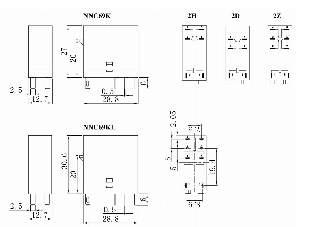 ★ نموذج الاتصال: h = لا ، d = nc ، z = no & nc | |||||||