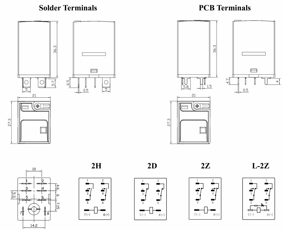 ميزة الاتصال | استمارة | 2Z(DPDT)؛2H(DPST-NO)؛2D(DPST-NC) | |||